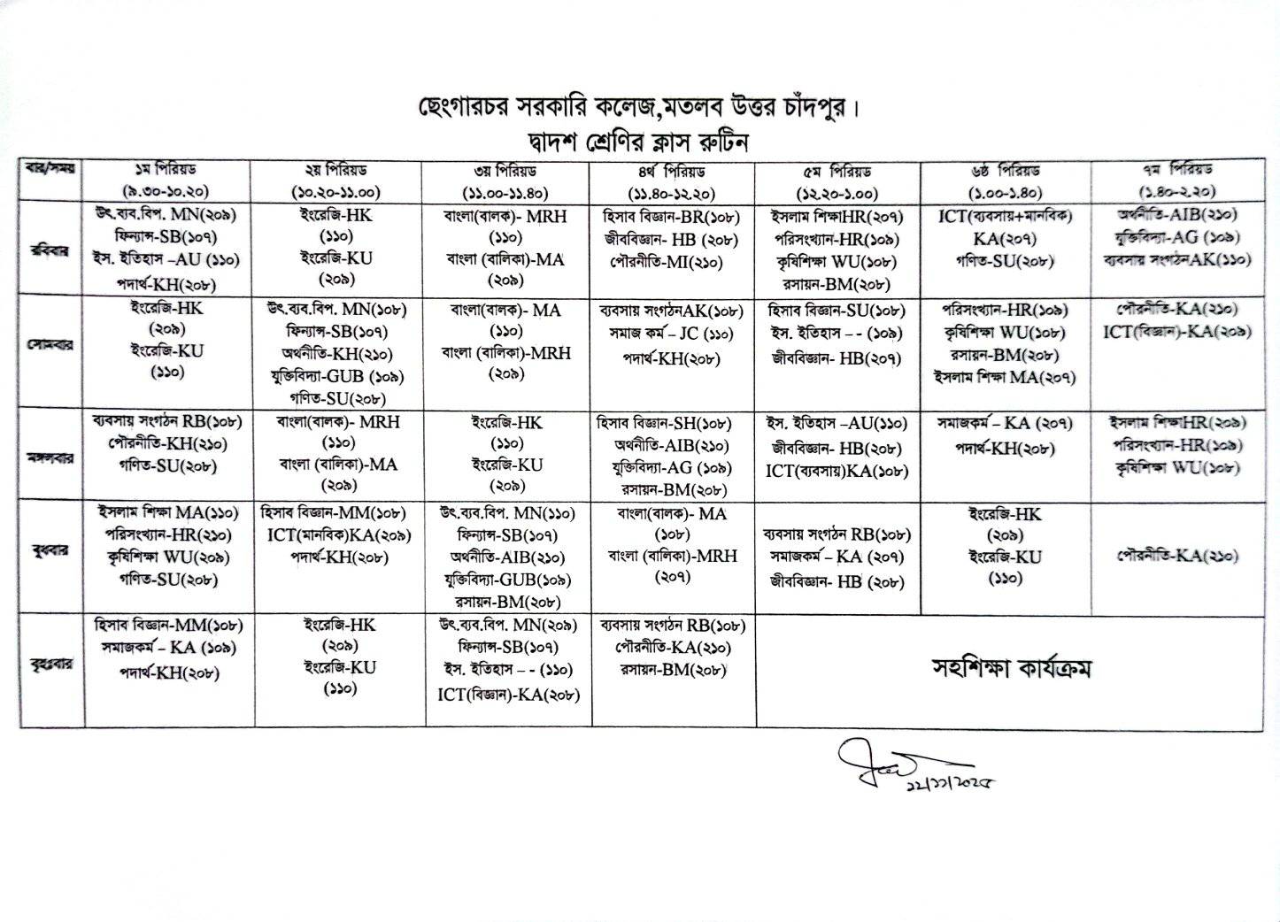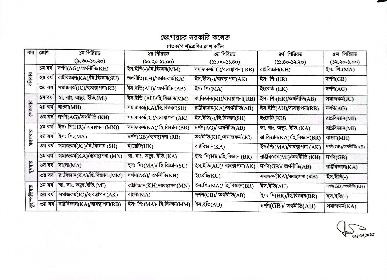 স্নাতক পাস শ্রেণির ক্লাস রুটিন